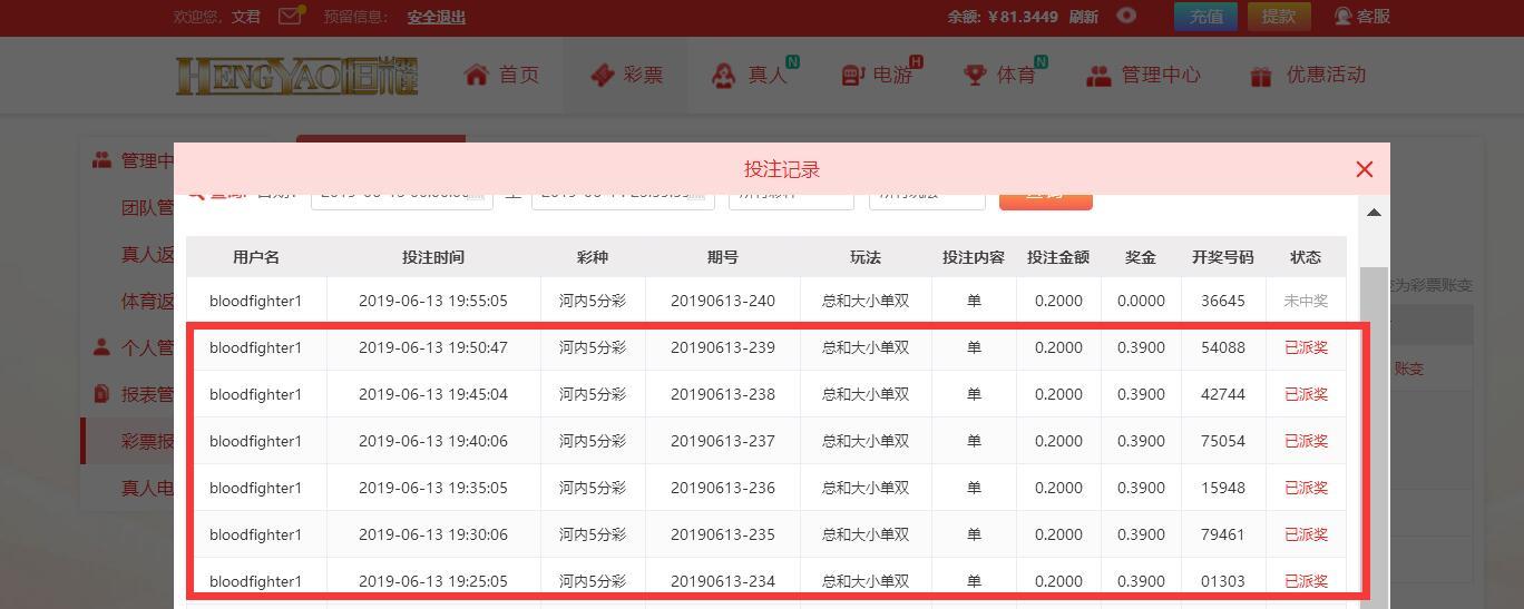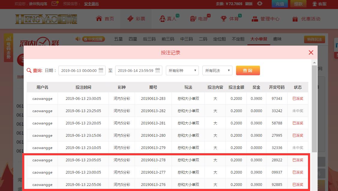 【恒耀娱乐】河内五分彩争霸赛!第007期第4天(06月13日)