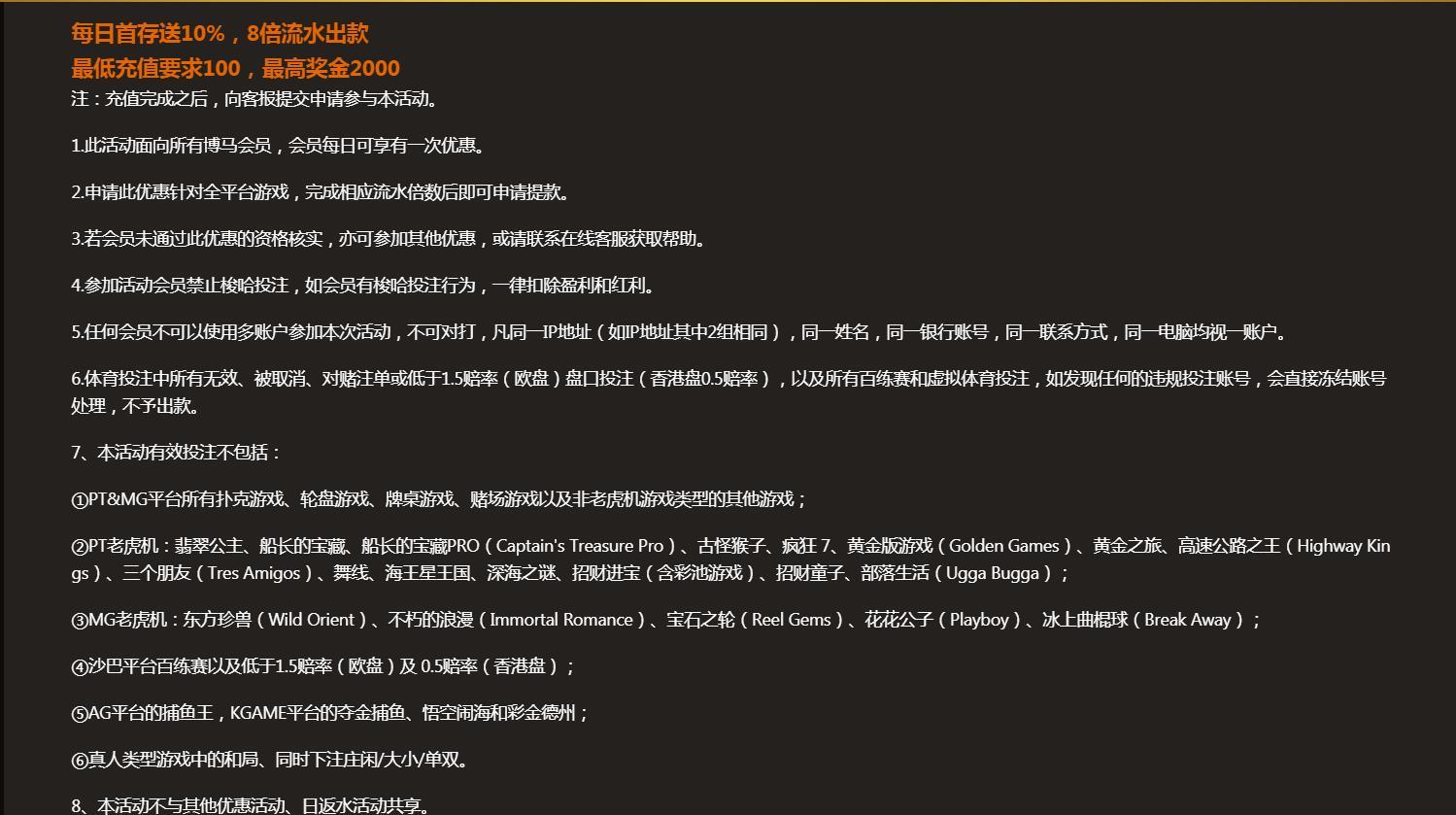 [|热门白菜] 博马365,每日首存送10%,8倍流水出款 最低充值要求100,最高奖金2000 |