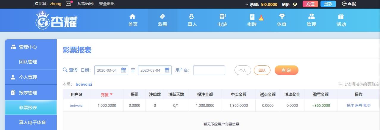 5 .投注截图:
