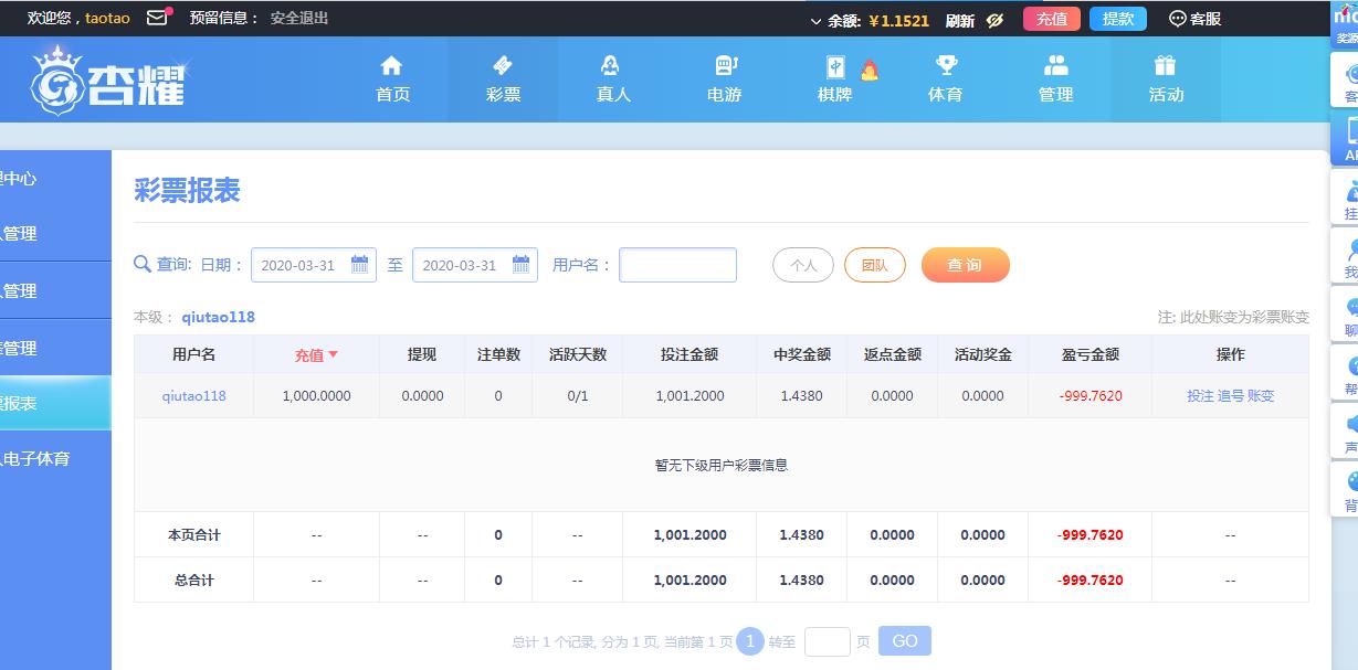 5 .投注截图: