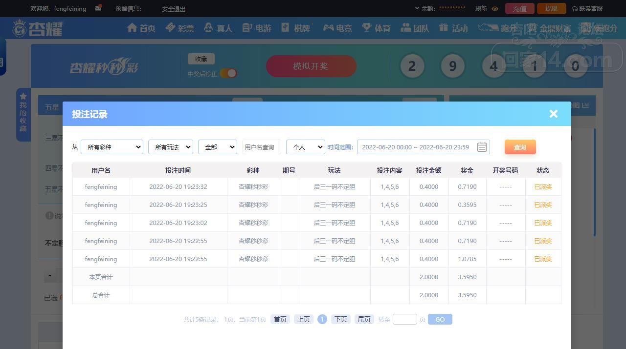 6-20杏耀秒秒彩运气挺不错