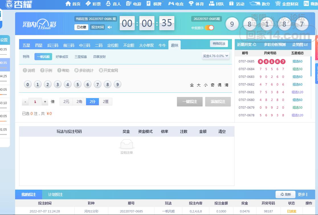 郁闷啊,一分彩就只中一个!