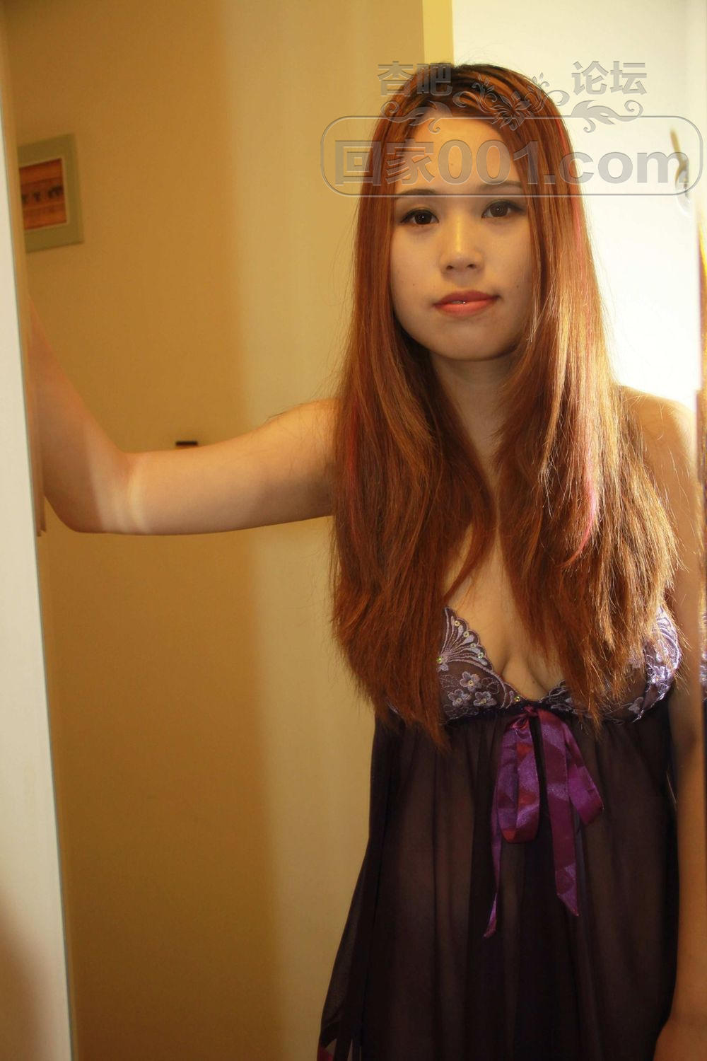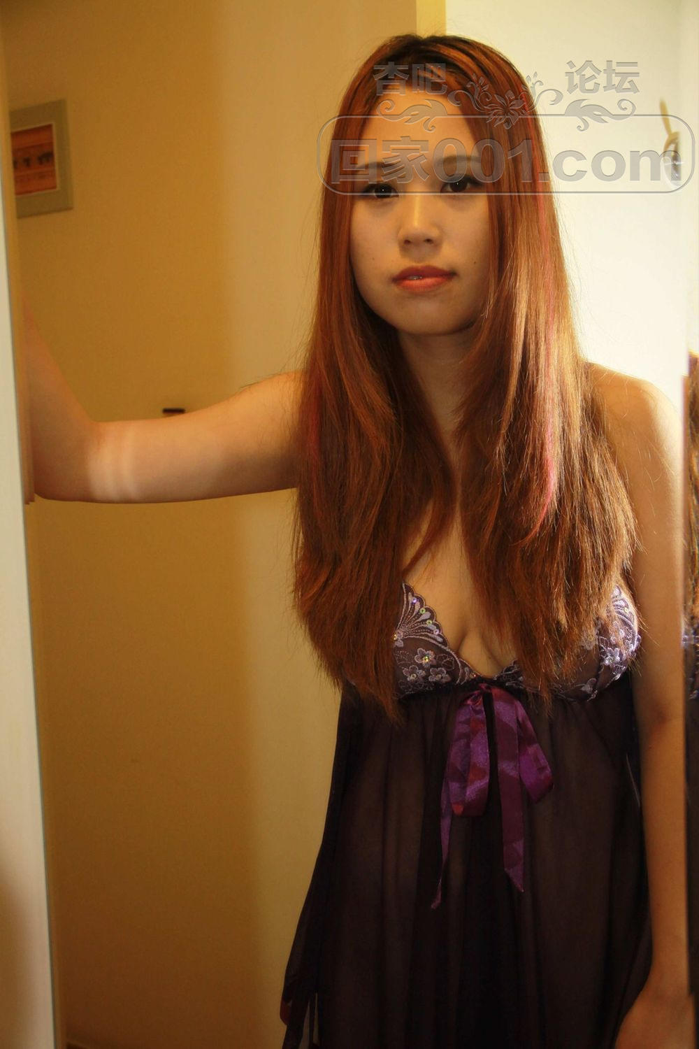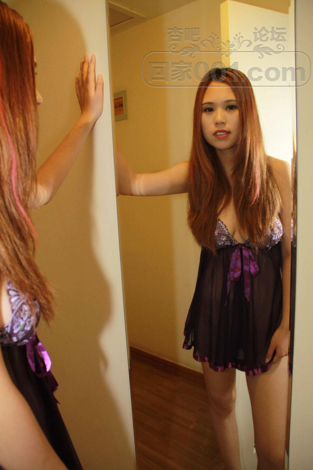 国产裸模郭莹穿着紫色内衣叉着腿站在马桶上【50P】