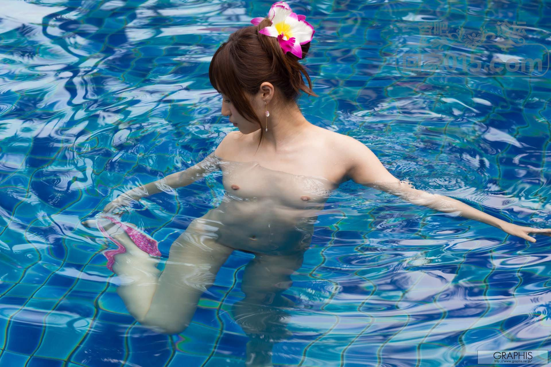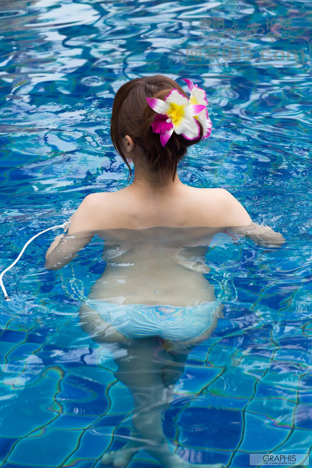 浅蓝色比基尼马尾少女户外泳池中露点色诱【18P】