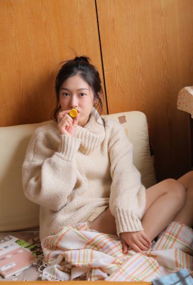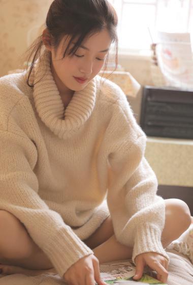 温柔美女王双白色毛衣装光滑大长腿清新治愈秋日【10P】