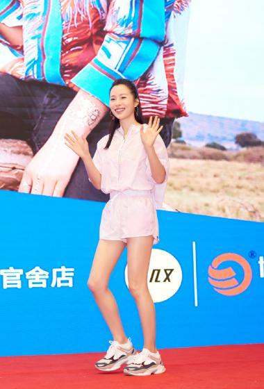 美女江一燕清新粉嫩长袖短裤户外活动大长腿【10P】