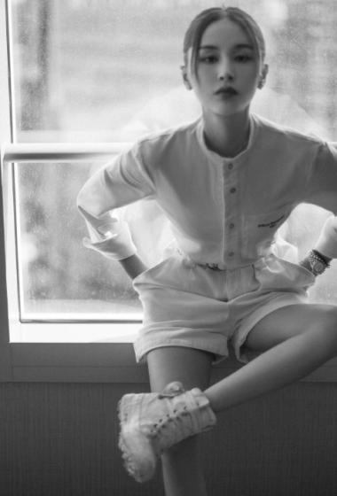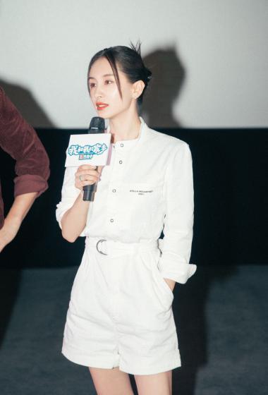 美女王子文白色工装连体短裤性感出席活动【11P】