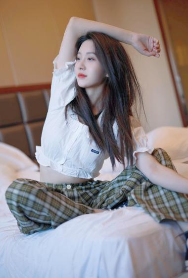 [明星写真] 王子璇长发飘飘露脐装格子长裤俏皮可爱【10P】 |
