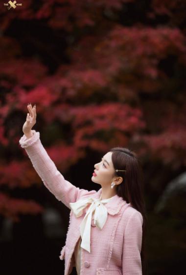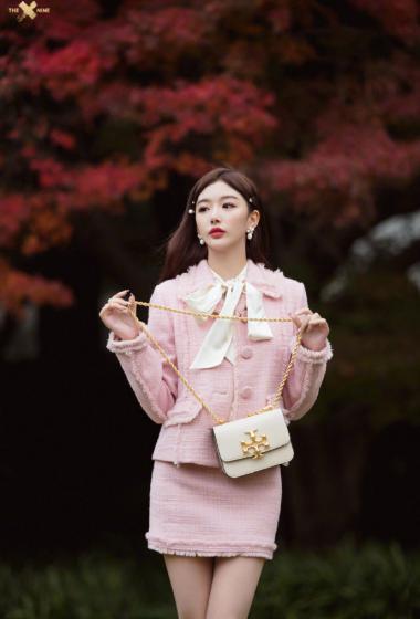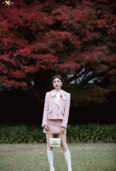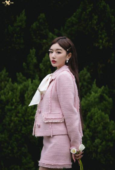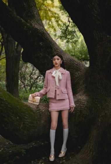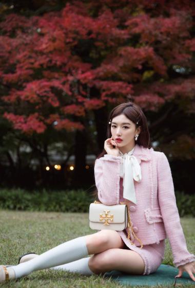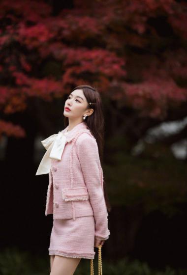 优雅女神孔雪儿粉色上衣短裙户外站立优雅性感【10P】