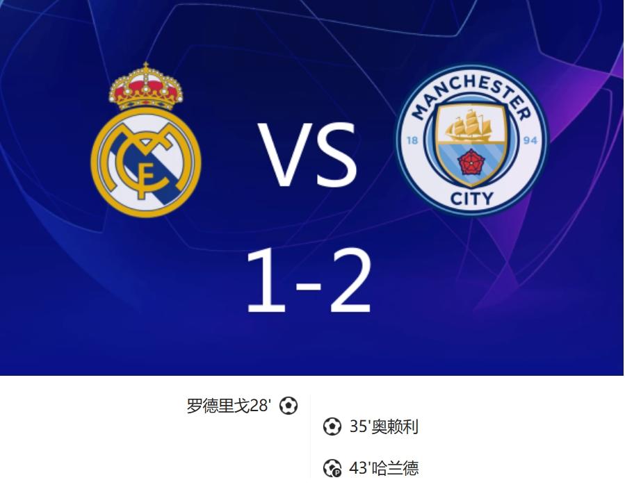 [|心得交流] 战报:皇马1-2曼城,罗德里戈破荒,哈兰德点射 |