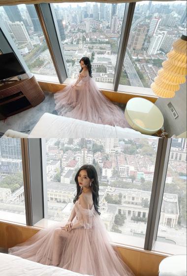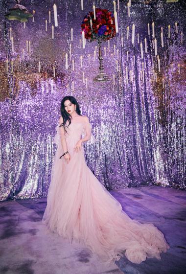 [明星写真] 美女张紫宁挑染紫发粉色薄纱长裙优雅【10P】 |