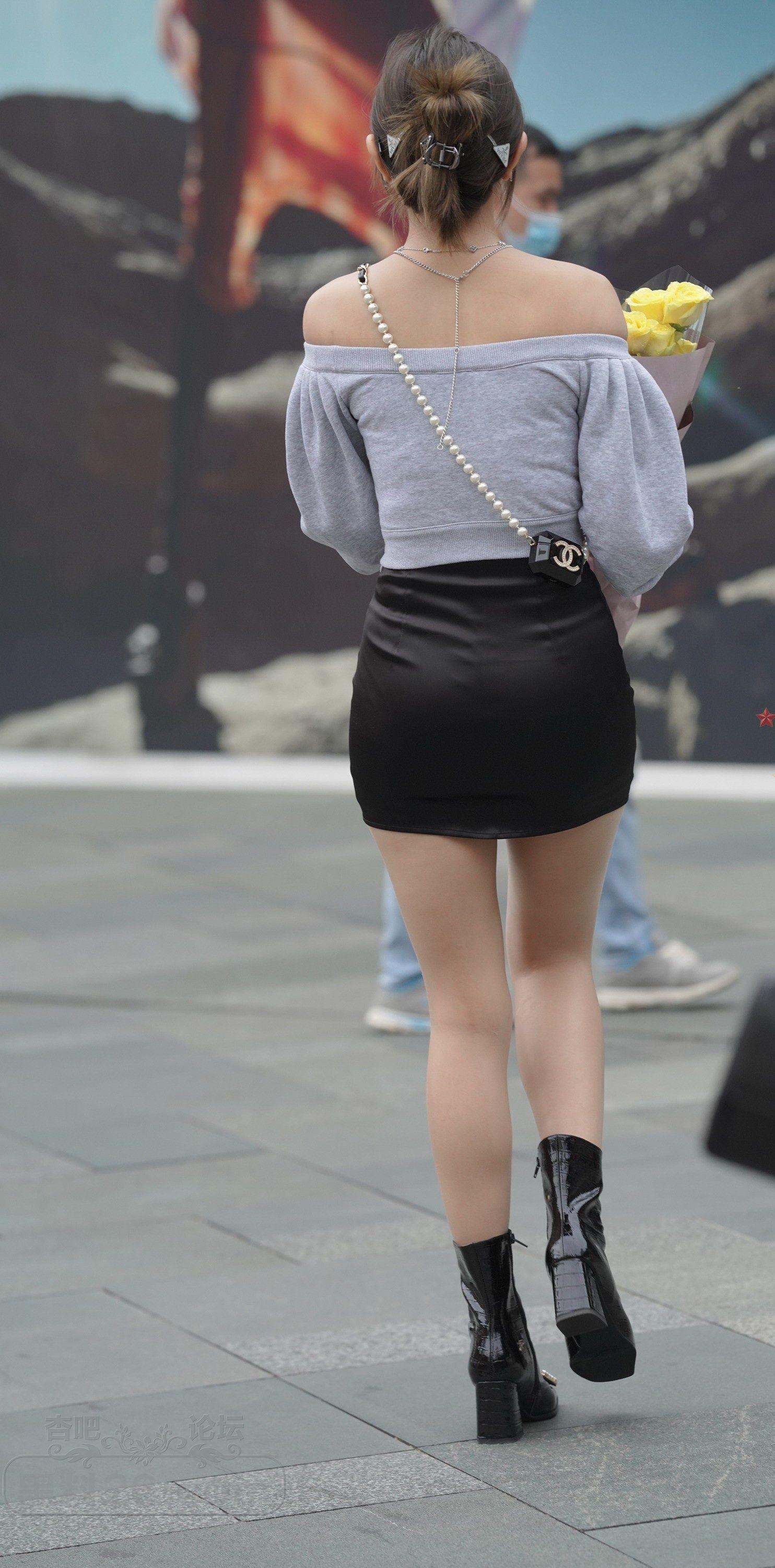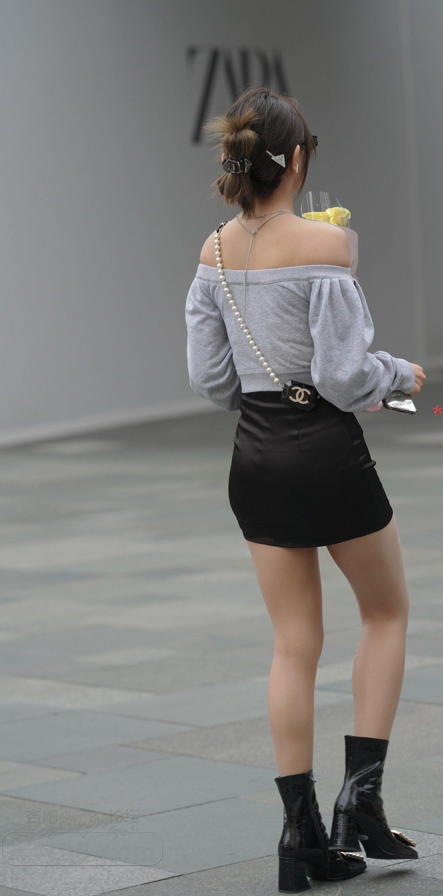 灰色露肩上衣灰色短裙时尚美眉肉丝美腿夏日福利【10P】